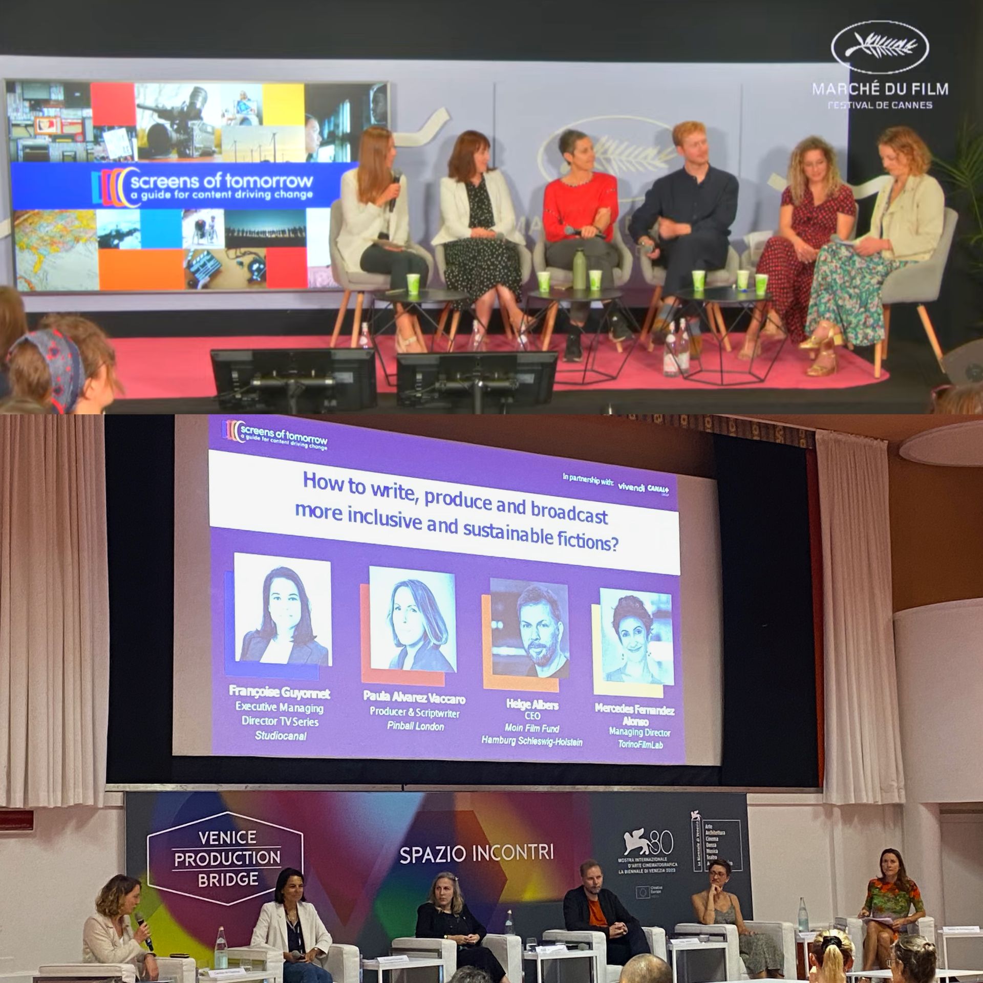 Le guide de L’écran d’après est lancé dans sa version internationale sous le nom de Screens of tomorrow au Festival de Cannes, lors d’une table ronde labellisée impACT par le Marché du Film, en présence de quatre professionnels et professionnelles de l’écriture, de la production et de la distribution européens inspirants. L’écran d’après a également soutenu le collectif C.U.T! (Cinéma Uni pour la Transition) et a monté les marches aux côtés de celles et ceux qui s’engagent pour la transition.